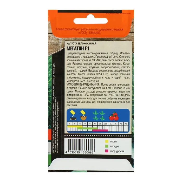 Семена Капусты белокочанной "Мегатон", F1, 10 шт. — Характеристики