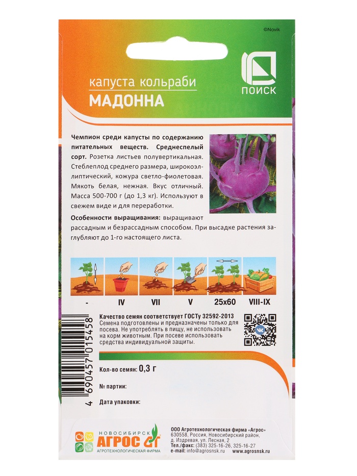 Семена Капусты кольраби «Мадонна», 0.3 г, «Агрос» — Характеристики