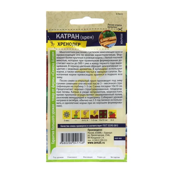 Многолетнее растение с успехом заменяющее хрен и превосходящее его по многим характеристикам. Формирует более крупные и ровные корни, с белой плотной мякотью, которые при правильном формировании достигают массы до 500 г. уже к концу первого года выращивания. В период цветения образует декоративные соцветия с медовым ароматом. В кулинарии используют корни, а также молодые листья в овощных салатах. Выкопанные корни превосходно хранятся в подвале всю зиму.