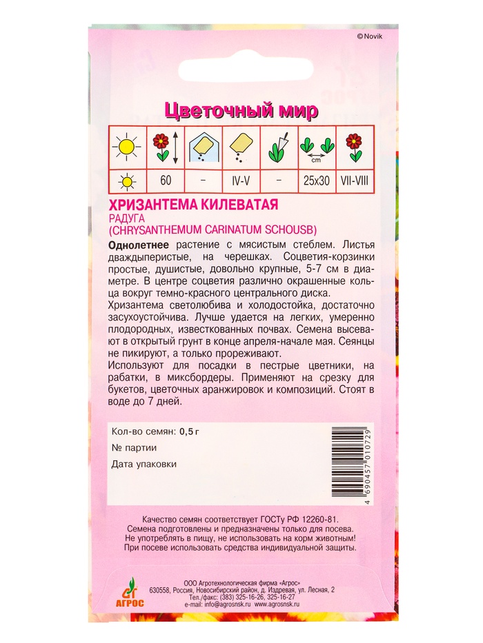 Семена Хризантема Килеватая "Радуга" 0,5 г — Характеристики