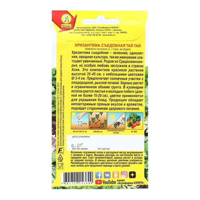 Семена Хризантема съедобная "Тай тай", 0,2 г — Характеристики