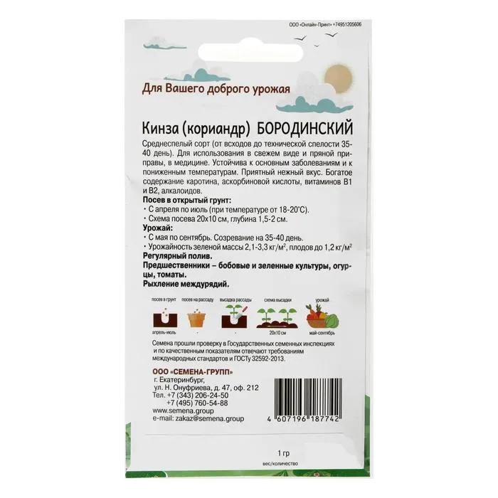 Холодостойкая культура, семена прорастают при температуре 8…10°С через 12-18 дней.