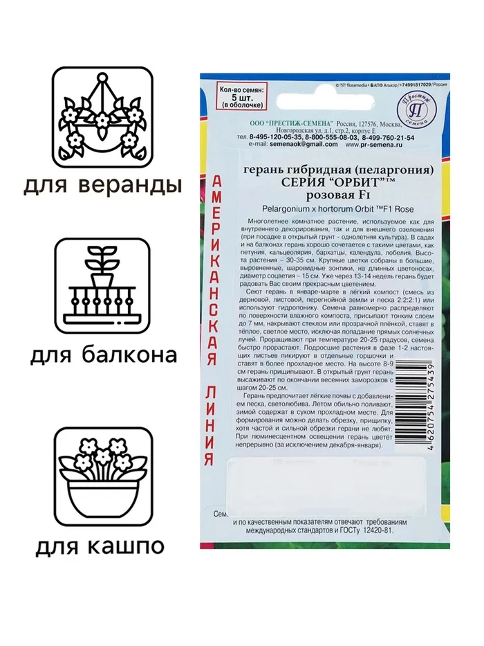 Семена комнатных цветов Герань "Розовая", F1, 5 шт. — Характеристики