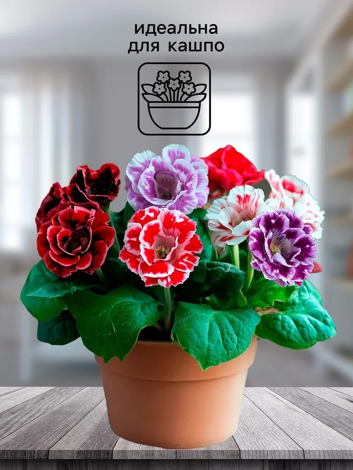 Махровые цветки глоксинии очень декоративны, имеют различную окраску (красную, белую, фиолетовую, розовую с многообразием оттенков).
