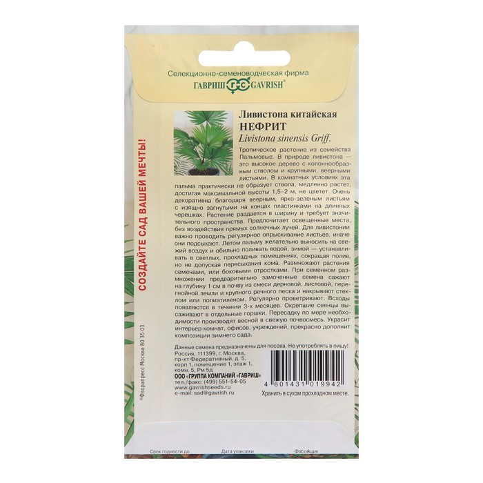 Китайская ливистона «Нефрит» — высокое растение с колоннообразным стволом и крупными листьями. В комнатных условиях практически не цветёт, не одревесневает, медленно развивается, достигая максимальной высоты 1,5–2 м.