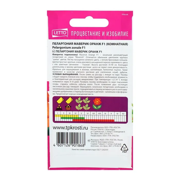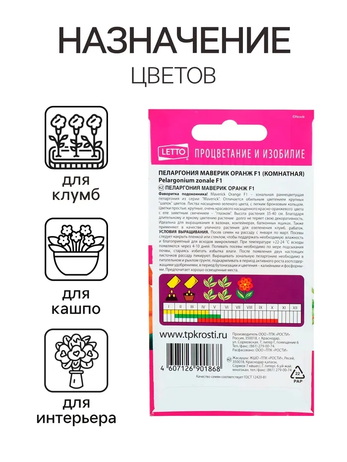 Семена комнатных цветов Пеларгония "Oранж", 4 шт. — Характеристики