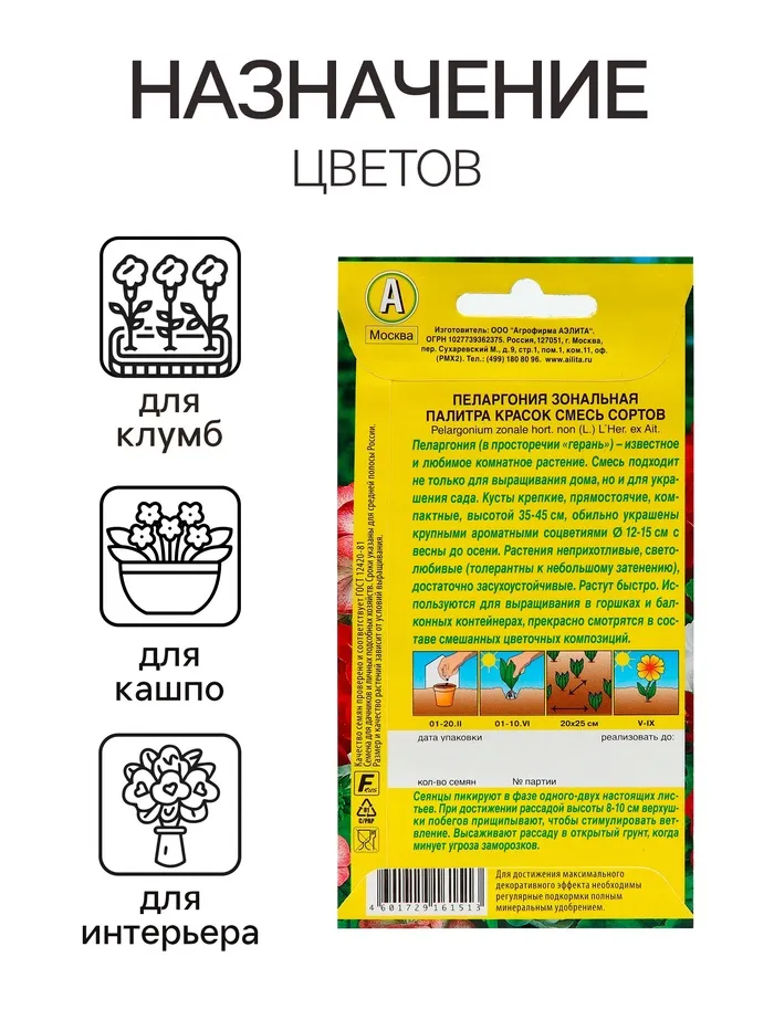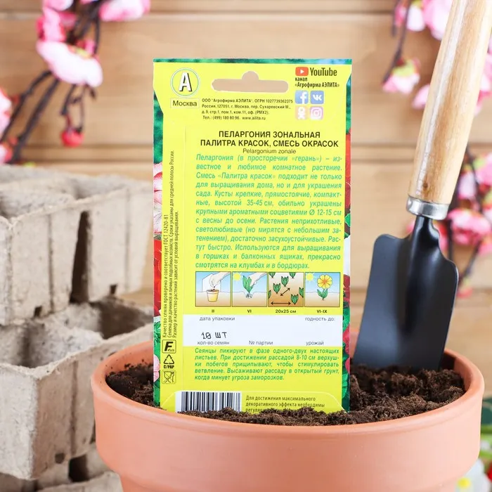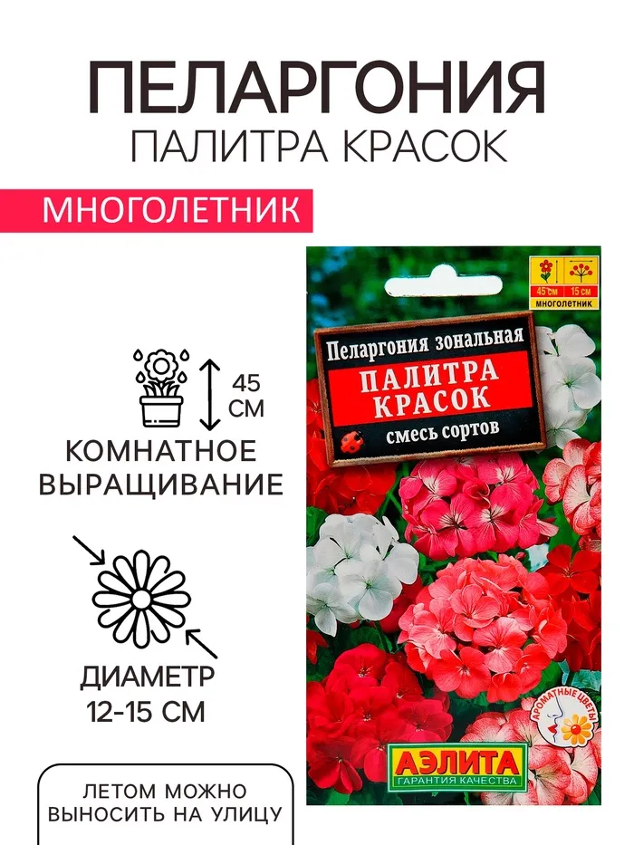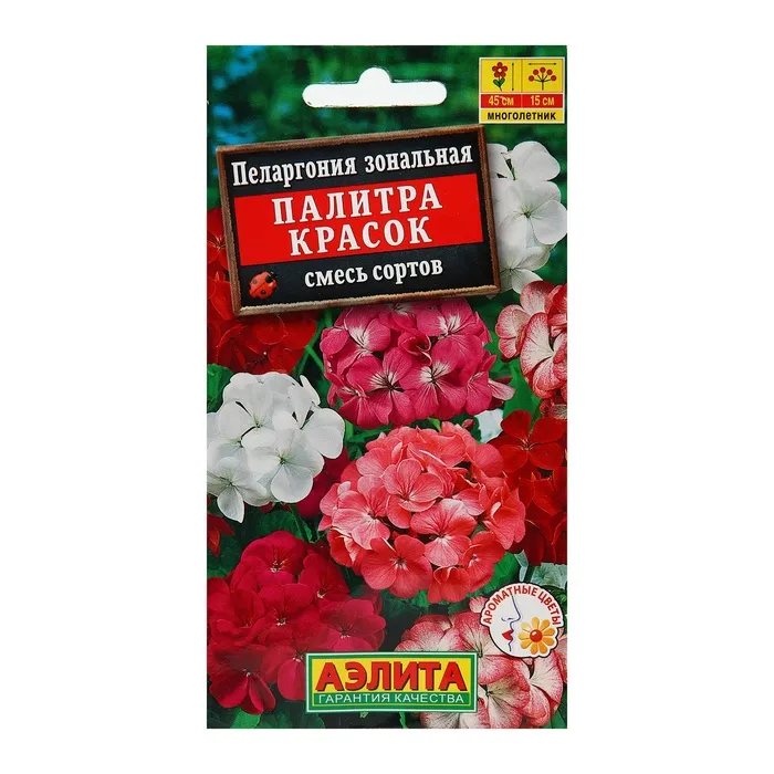 «Палитра красок» — смесь сортов пеларгоний (герани) для выращивания дома и украшения сада. Растение формирует крепкие прямостоячие кусты, которые с весны до осени обильно украшены крупными ароматными соцветиями. Это неприхотливые, светолюбивые, засухоустойчивые растения.