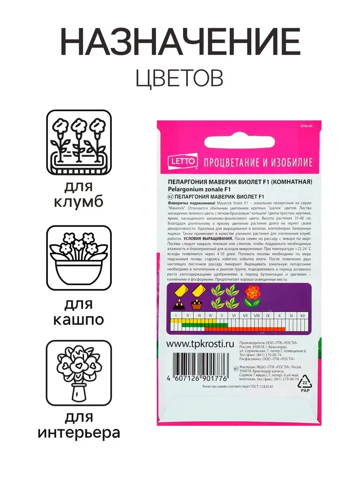 Семена комнатных цветов Пеларгония "Виолет", 4 шт. — Характеристики