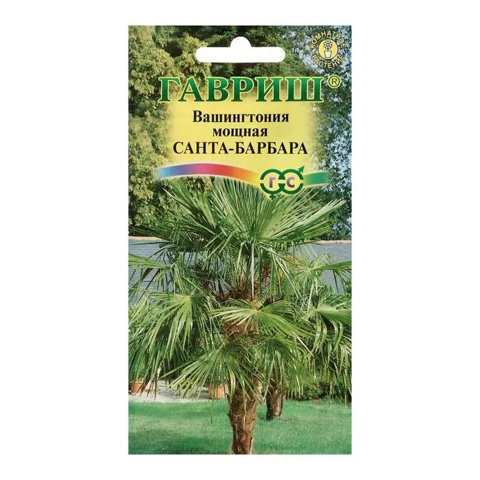 «Санта-Барбара» — это красивая многолетняя пальма, которая в природе достигает 20 м в высоту. Отличается от нитеносной вашингтонии вытянутым стволом и густой компактной кроной.