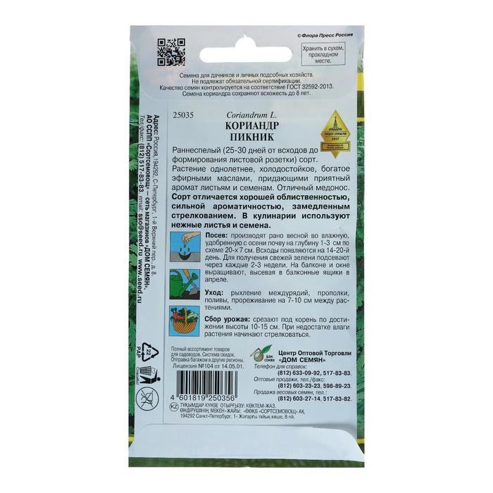 Семена Кориандр "Пикник" 90 шт — Характеристики