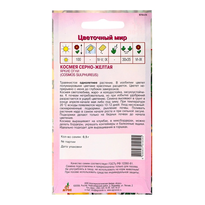 Семена Космея «Яркие огни», 0.5 г, «Агрос» — Характеристики