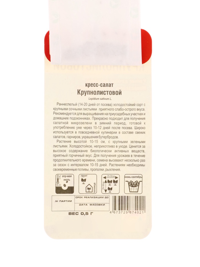 Семена Кресс-салат Крупнолистовой 0,5г — Характеристики