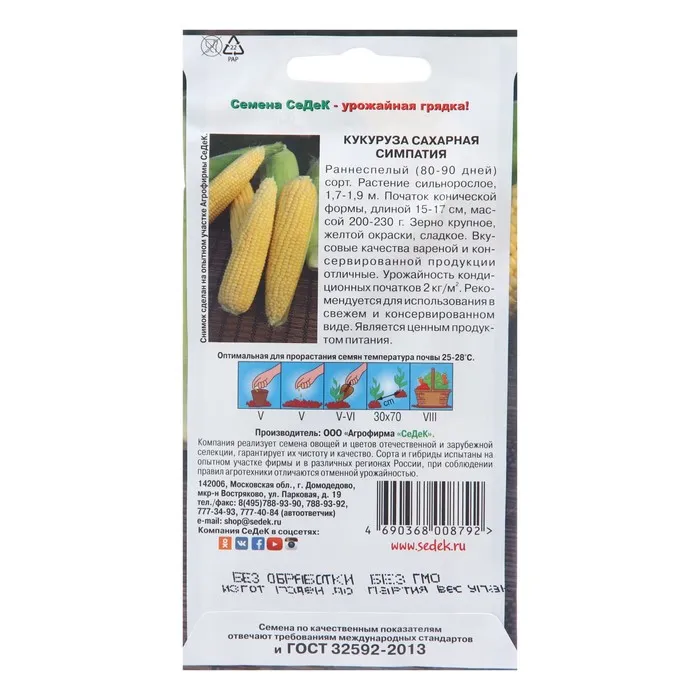 Семена Кукуруза "Симпатия F1", 4 г — Характеристики