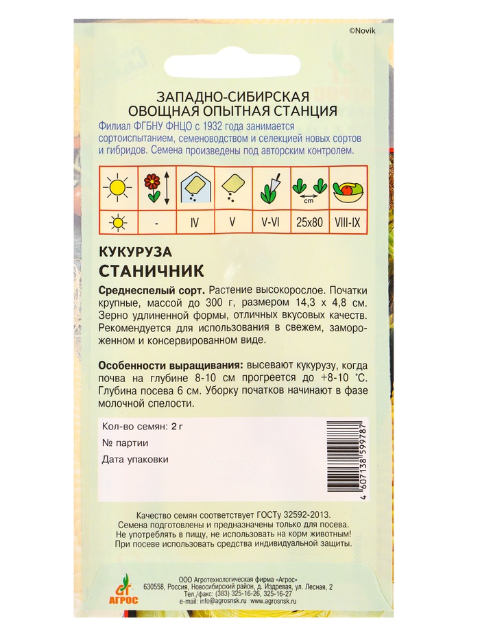 Семена Кукуруза «Станичник», 2 г, «Агрос» — Характеристики