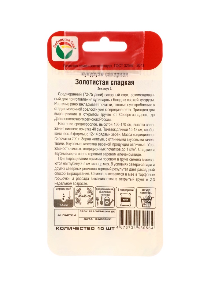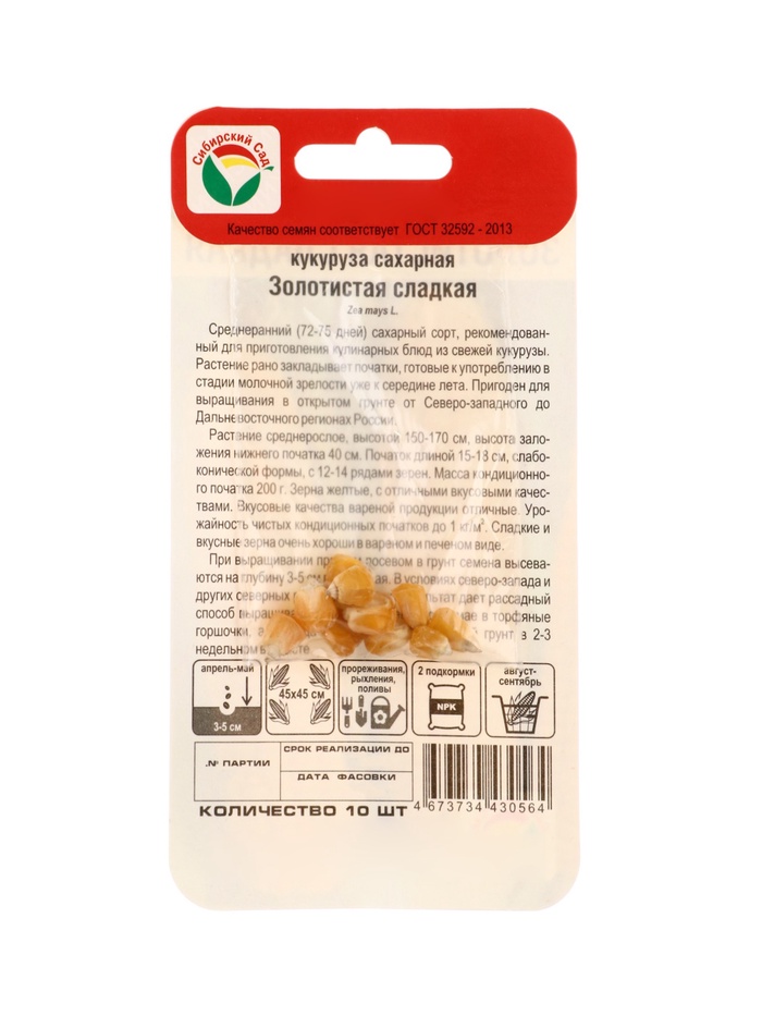 Семена Кукуруза Золотистая сладкая 10 шт. — Характеристики