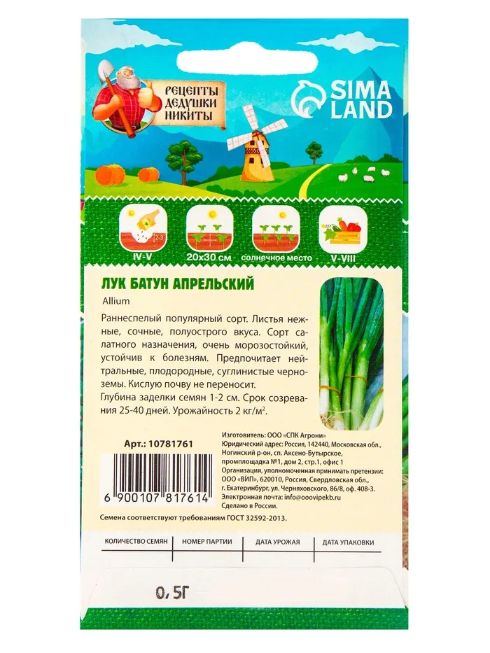 Лук батун «Апрельский» — это простое и надежное решение для тех, кто ценит качество, удобство и экономию. Вы получите богатый урожай ароматной зелени без лишних усилий. Этот сорт станет вашим верным помощником на огороде, радуя вас свежестью и пользой круглый год. Не упустите возможность вырастить свой собственный лук батун по доступной цене! Закажите семена прямо сейчас и сделайте шаг к здоровому и экологичному будущему вашего стола.
