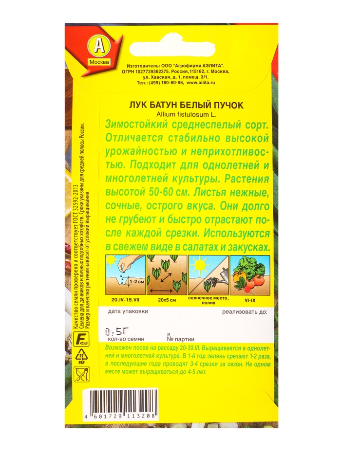 Семена Лук батун «Белый пучок», многолетний, 0.5 г, «Агрофирма АЭЛИТА» — Характеристики