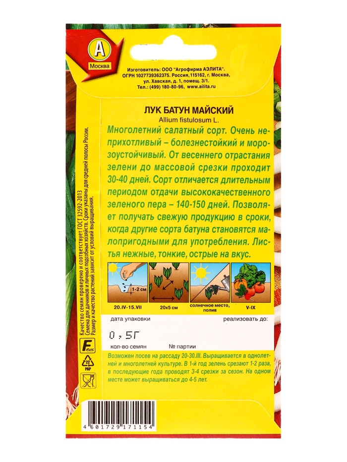 Семена Лук батун «Майский», 0.5 г, многолетник, «Аэлита» — Характеристики