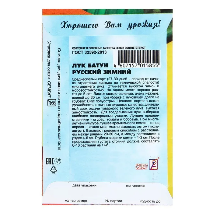 Среднеспелый салатный сорт многолетнего лука. Листья светло-зелёные со средним восковым налётом, нежные, длиной до 33 см. Вкус слабоострый. Товарную луковицу не формирует. Отличается высокой зимо- и морозостойкостью. На одном месте хорошо растет до 5 лет. Листья при уборке с луковицей долго не грубеют. Ценность сорта: отличные вкусовые качества листьев, высокая урожайность, зимостойкость, длительный срок отдачи зелёного товарного лука.