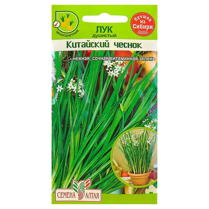 Многолетний, зимостойкий лук. Дает самую раннюю витаминную зелень, которая остается нежной и сочной на протяжении всего вегетационного периода. Листья плоские, длиной 33-35 см. Вкус полуострый, чесночный. Масса одного растения 15-20 г. Урожайность зеленой массы за сезон 3,5-4,5 кг/м2. Товарная луковица не образуется. Зелень в свежем виде добавляют в салаты, используют как приправу к первым и вторым блюдам. Растения обладают высокой декоративностью.