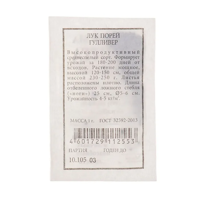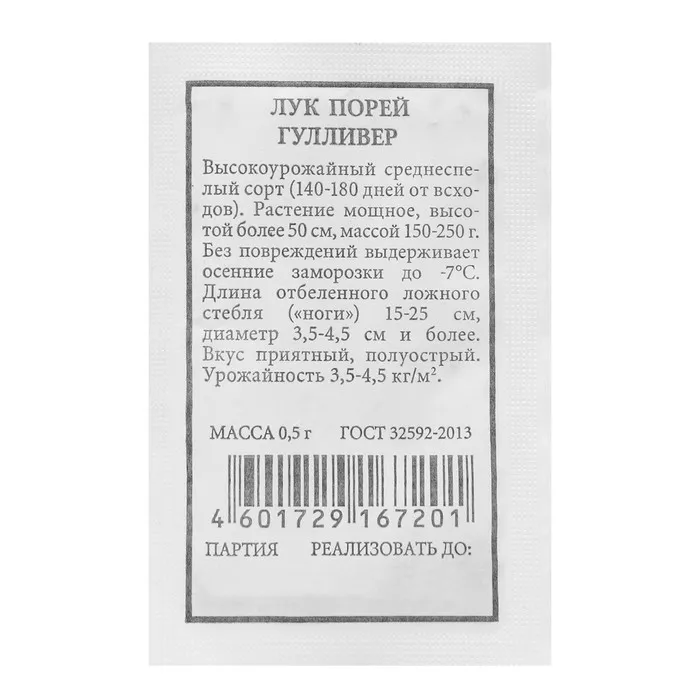 Семена Лук порей "Гулливер", Дв, б/п, 0,5 г — Характеристики