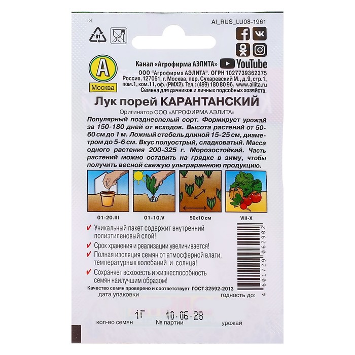 Среднеспелый лук-порей созревает через 125‒176 дней после посадки, и его масса достигает 325 г. Опытные садоводы ценят холодостойкость растения и вкусовые качества. В пищу употребляют ложный стебель и молодые зелёные листья приятного слабоострого вкуса.
