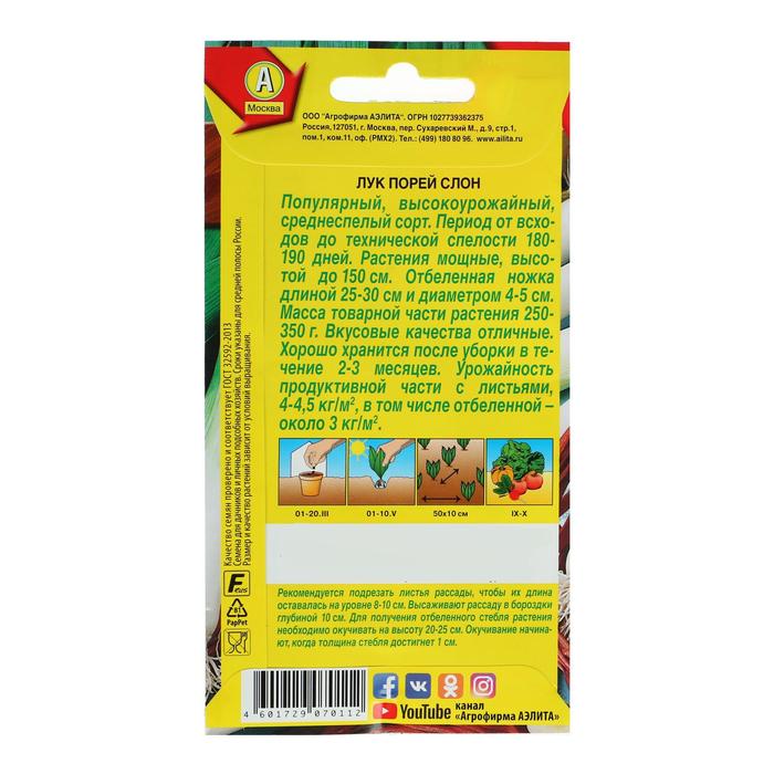 Семена лука порей «Слон» — среднеранний сорт. Период от всходов до технической спелости насчитывает около 130 дней.