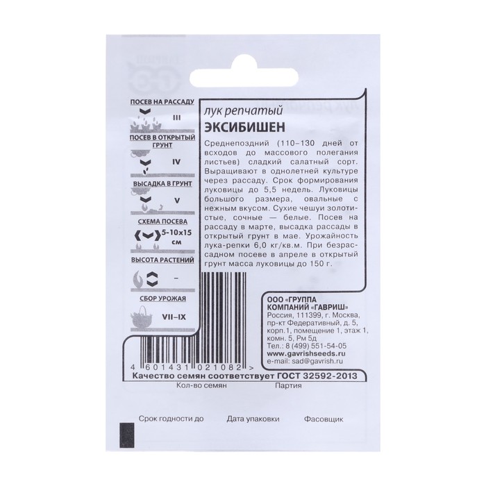 Семена Лук репчатый «Эксибишен», 0.1 г, «Гавриш» — Характеристики
