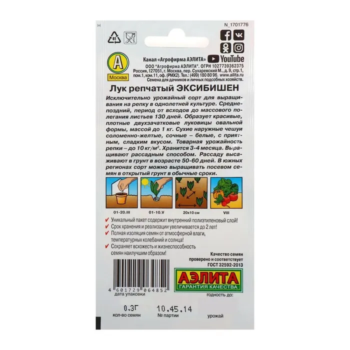 «Эксибишен» — это среднепоздний урожайный сорт репчатого лука, который подходит для выращивания в однолетней культуре. Период от всходов до массового полегания листьев составляет 130 дней.
