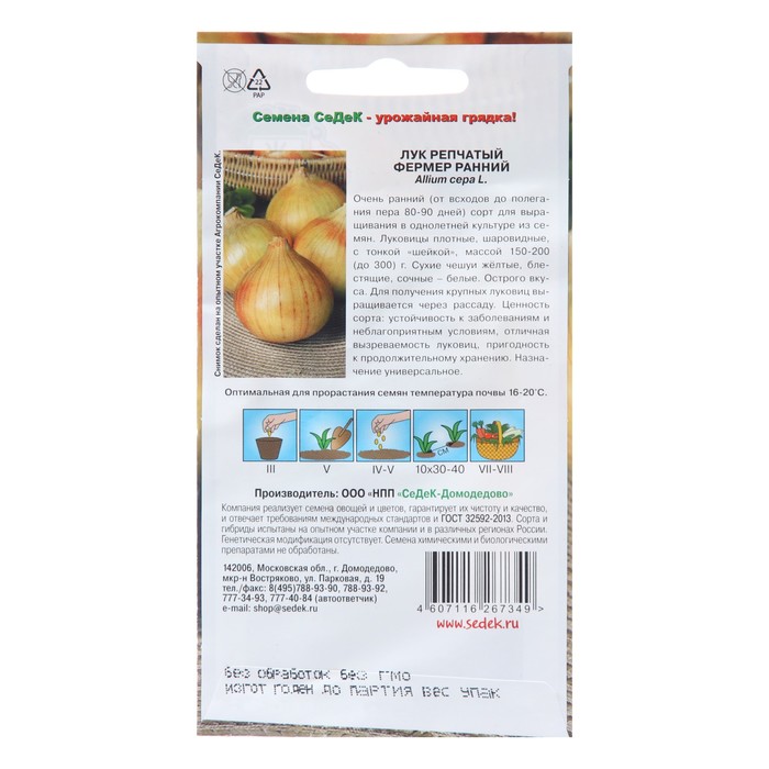 Семена Лук репчатый "Фермер Ранний", 0,5 г — Характеристики