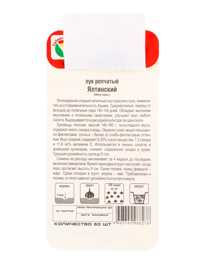 Семена Лук репчатый Ялтинский красный 60 шт. — Характеристики