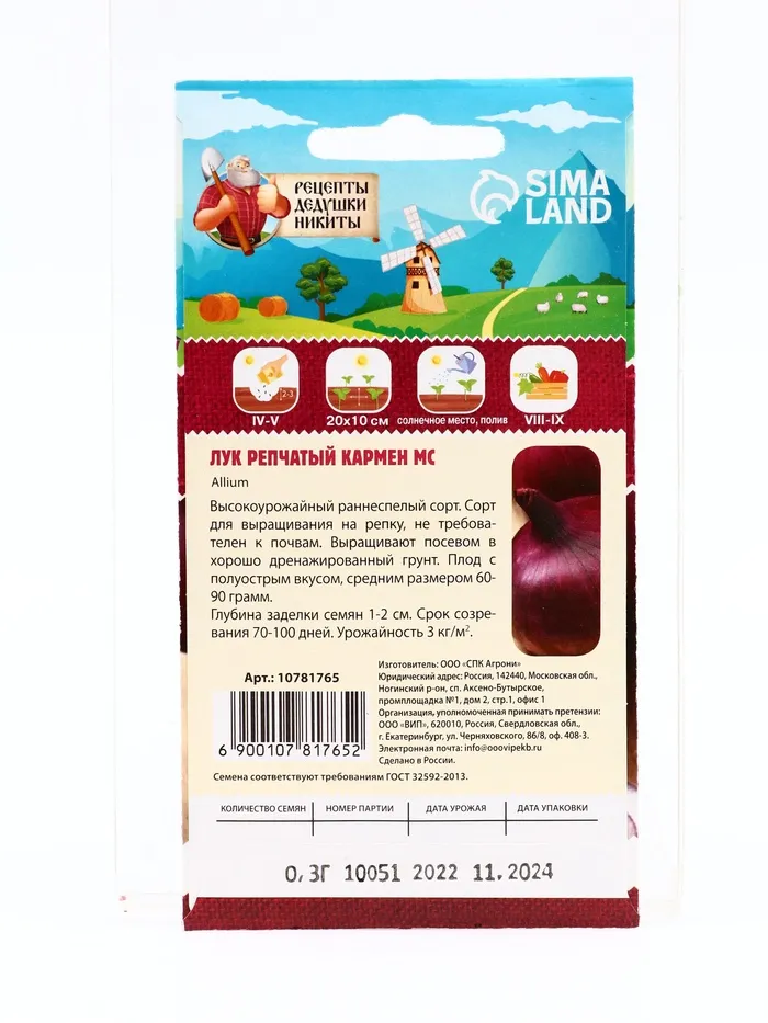 Семена Лук репчатый "Кармен МС", 0,3 г — Характеристики