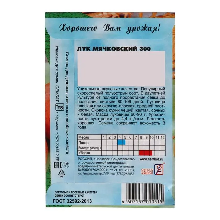 Посев семян на рассаду производят в марте, а рассаду в открытый грунт сажают в начале мая. Высаживают рассаду в грядки на расстоянии 5 см, междурядье должно составлять 30–40 см. Почву вокруг растения прижимают к корням. Посев семян непосредственно в открытый грунт производят в конце апреля - начале мая, на глубину 1,0-1,5 см. Перед посевом семена замачивают на сутки в воде, а затем подсушивают. После посева верхний слой почвы слегка уплотняют. Семена прорастают при 7°С. До появления всходов не допускать пересыхания почвы. Лук размещают на открытых, хорошо освещенных участках с плодородной супесчаной почвой, заправленной удобрениями в предыдущие годы. В период вегетации поддерживать верхний слой почвы в рыхлом состоянии. Поливы проводят в сухие периоды с 1 мая по 20 июля. При полегании листьев луковицы выбирают из почвы и дозаривают в теплом проветриваемом помещении в течение 7-10 дней. Просушенный лук хранят в сухом месте.