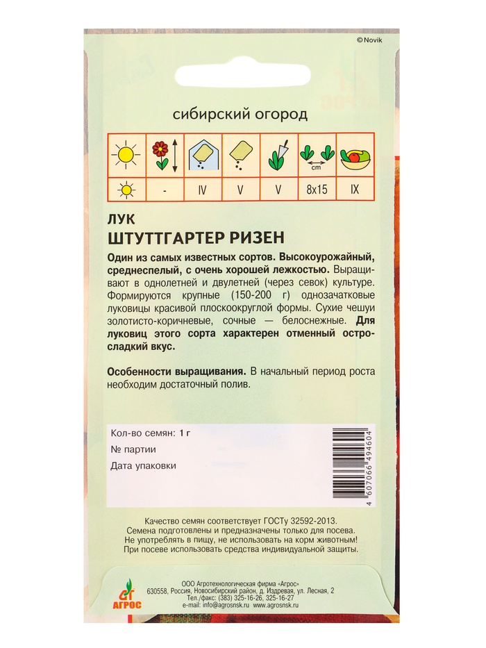 Семена Лук репчатый «Штуттгартер Ризен», 1 г, «Агрос» — Характеристики
