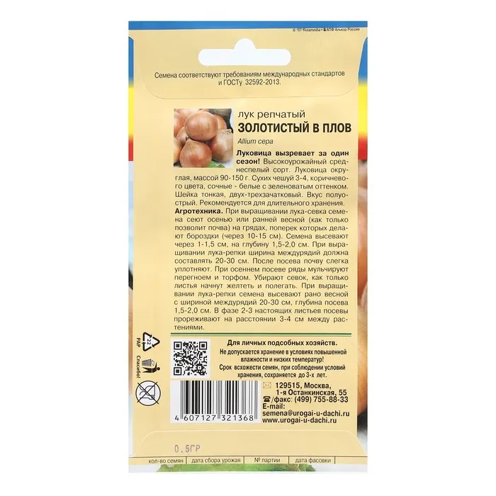 Семена Лук репчатый "ЗОЛОТИСТЫй "В ПЛОВ", 0,5 г — Характеристики