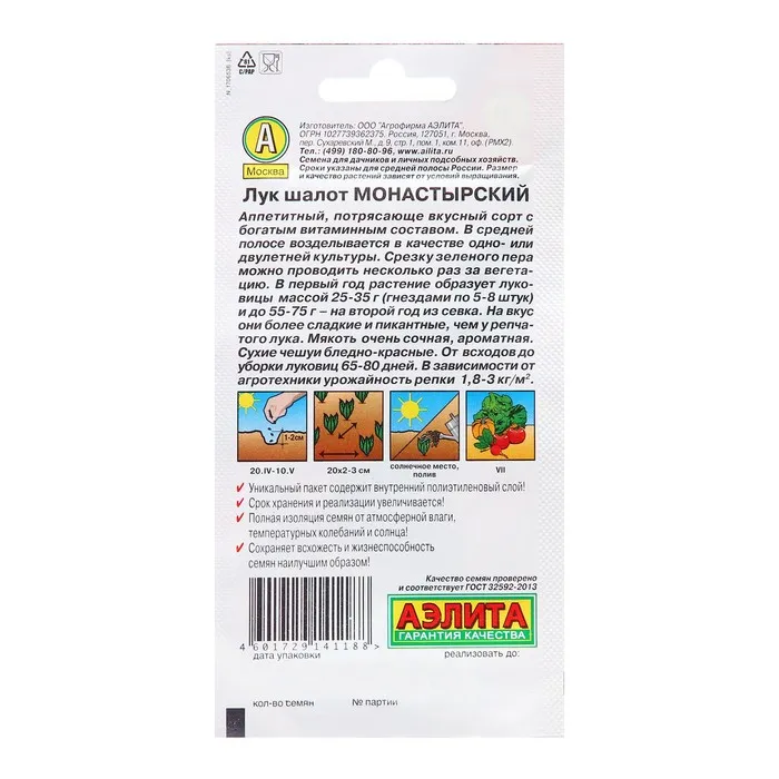 Аппетитный, потрясающе вкусный сорт лука шалота, который отличается богатым витаминным составом. В средней полосе возделывается в качестве одно- или двулетней культуры. Срезку зеленого пера можно проводить несколько раз за вегетацию. В первый год растение образует луковицы средней массой 25-35 г (гнездами по 5-8 штук) и до 55-75 г – на второй год из севка. На вкус они более сладкие и пикантные, чем у репчатого лука. Мякоть средней плотности, очень сочная, ароматная, розовато-белая. Сухие чешуи бледно-красные. Период от появления всходов до уборки луковиц 65-80 дней. В зависимости от агротехники урожайность репки составляет 1,8-3 кг/м2.В первый год получают мелкие луковицы, которые используют в дальнейшем в качестве севка. Севок убирают в сухую погоду и закладывают на хранение. На следующий год каждая луковичка севка образует гнездо луковиц, крупные из которых используют в пищу, а мелкие оставляют для дальнейшего воспроизводства.