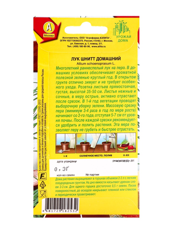 Многолетний раннеспелый лук на перо. В домашних условиях обеспечивает ароматной полезной зеленью круглый год. В открытом грунте отлично зимует и не требует особенного ухода. Розетка листьев прямостоячая, густая, высотой 35-50 см. Листья нежные и сочные, в меру острые, активно отрастают после срезок. В первый год вегетации проводят выборочную уборку зелени. Массовую срезку пера (минимум 3-4 раза в год по мере роста) начинают со 2-го года, отступая 5-7 см от уровня почвы. После каждой срезки рекомендуется удобрить и полить растения. Эта мера позволяет перу не грубеть и быстрее отрастать.