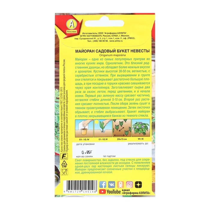 Сеют поверхностно, без заделки, под стекло для сохранения постоянной влажности до всходов. С появлением одной-двух пар настоящих листьев сеянцы пикируют. Майоран предпочитает солнечные участки с плодородной, дренированной почвой.