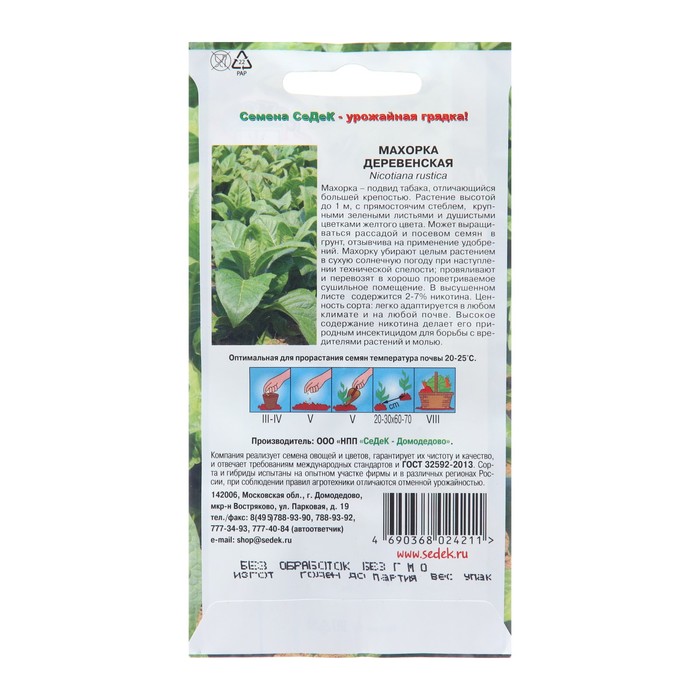 Семена Махорка «Деревенская», 0.01 г, «СеДеК» — Характеристики
