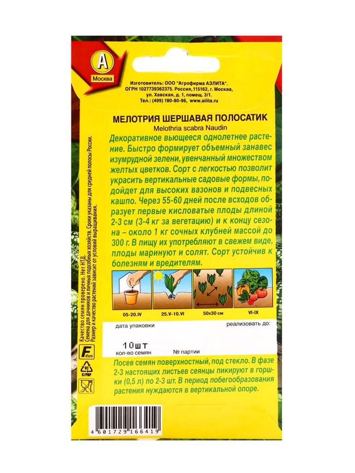 Мелотрия тепло- и светолюбива. Отзывчива на удобрение, регулярные, умеренные поливы и рыхление почвы. В период побегообразования требует вертикальной опоры. Загущенность кроны отрицательно сказывается на завязываемости плодов.