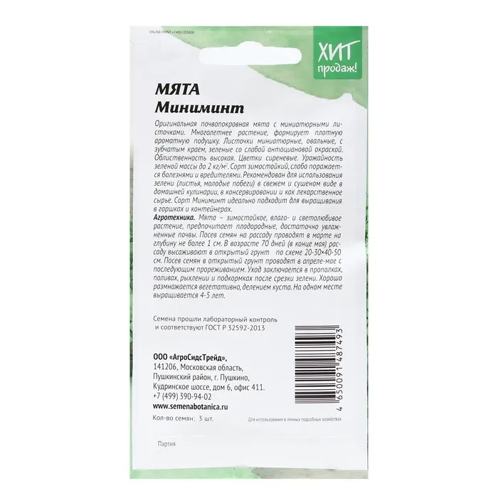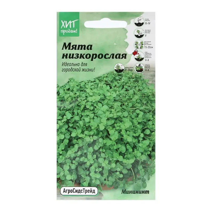 Оригинальная почвопокровная мята с миниатюрными листочками. Многолетнее растение, формирует плотную ароматную подушку. Листочки миниатюрные, овальные, с зубчатым краем, зеленые со слабой антоциановой окраской. Облиственность высокая. Цветки сиреневые. Урожайность зеленой массы до 2 кг/м2. Сорт зимостойкий, слабо поражается болезнями и вредителями. Рекомендован для использования зелени (листья, молодые побеги) в свежем и сушеном виде в домашней кулинарии, в консервировании и как лекарственное сырье. Сорт Миниминт идеально подходит для выращивания в горшках и контейнерах.