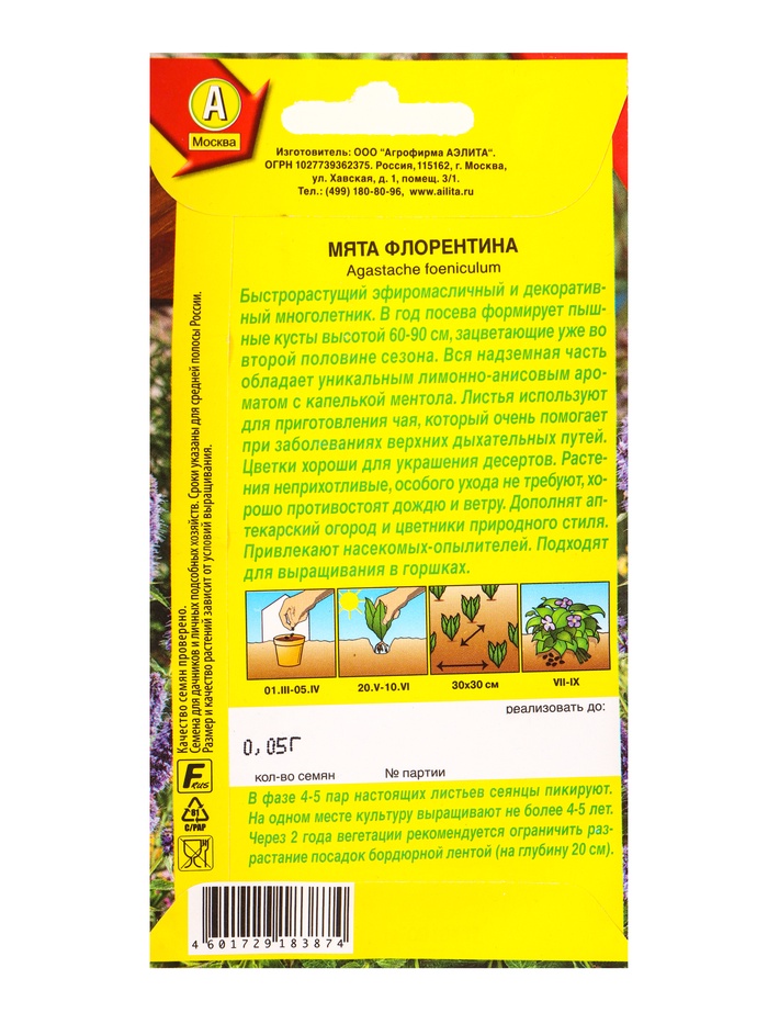 Семена Мята «Флорентина», 0.05 г, «Агрофирма АЭЛИТА» — Характеристики