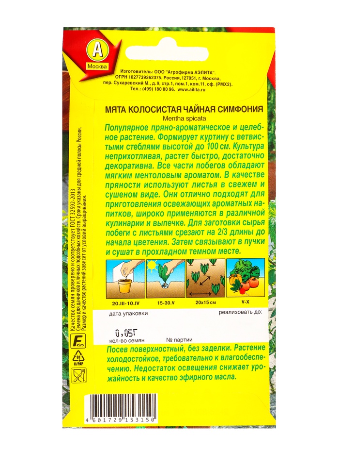 Семена Мята колосистая «Чайная симфония», 0.05 г, «Агрофирма АЭЛИТА» — Характеристики