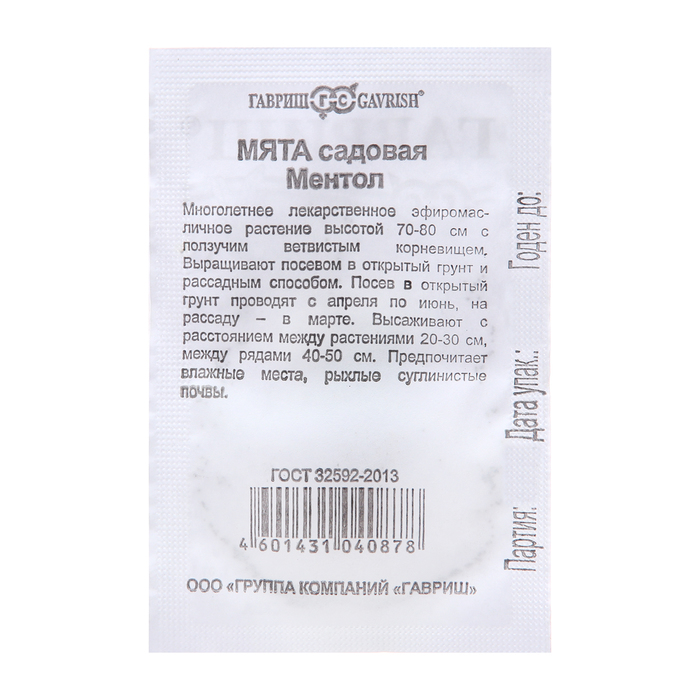 Семена Мята «Ментол», 0.05 г, «Гавриш» — Характеристики