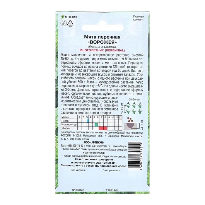 "Многолетнее растение. Стебли прямостоячие, ветвистые. Листья продолговатые или яйцевидно-ланцетные, длиной 6 см, шириной 3 см, край сильнопильчатый. Цветки красно-фиолетовые. Урожайность зеленой массы с одного растения при двукратной уборке 800 г.