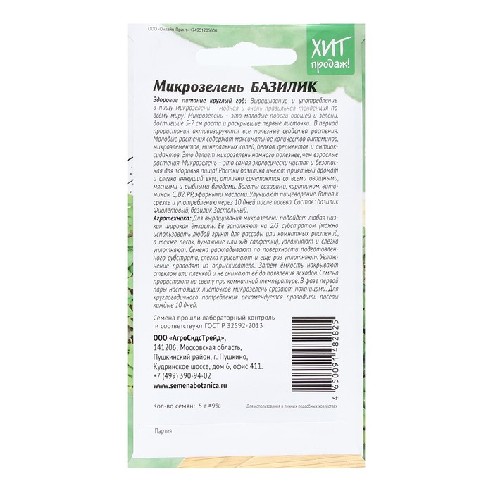 Микрозелень БАЗИЛИК