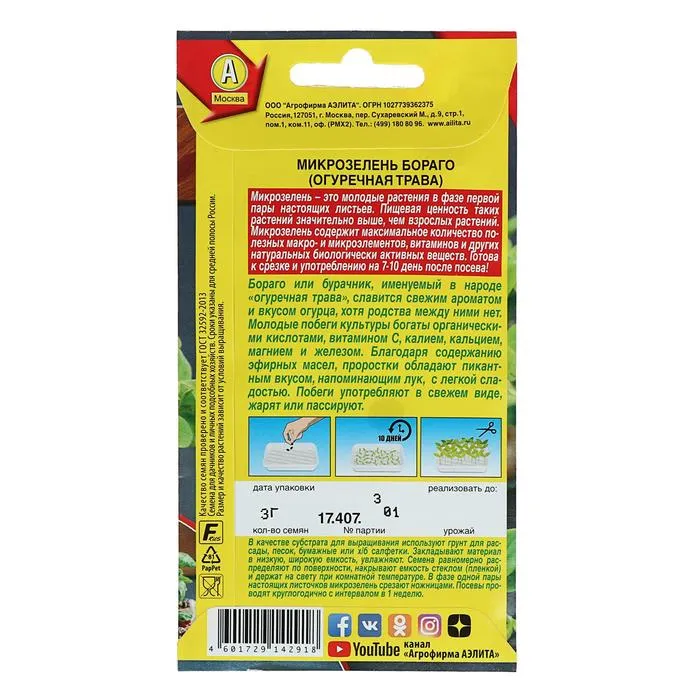 Бораго или бурачник, именуемый в народе «огуречная трава», славится свежим ароматом и вкусом огурца, хотя родства между ними нет. Молодые побеги культуры богаты органическими кислотами, витамином С, калием, кальцием, магнием и железом. Благодаря содержанию эфирных масел, проростки обладают пикантным вкусом, напоминающим лук, с легкой сладостью. Побеги употребляют в свежем виде, жарят или пассируют.