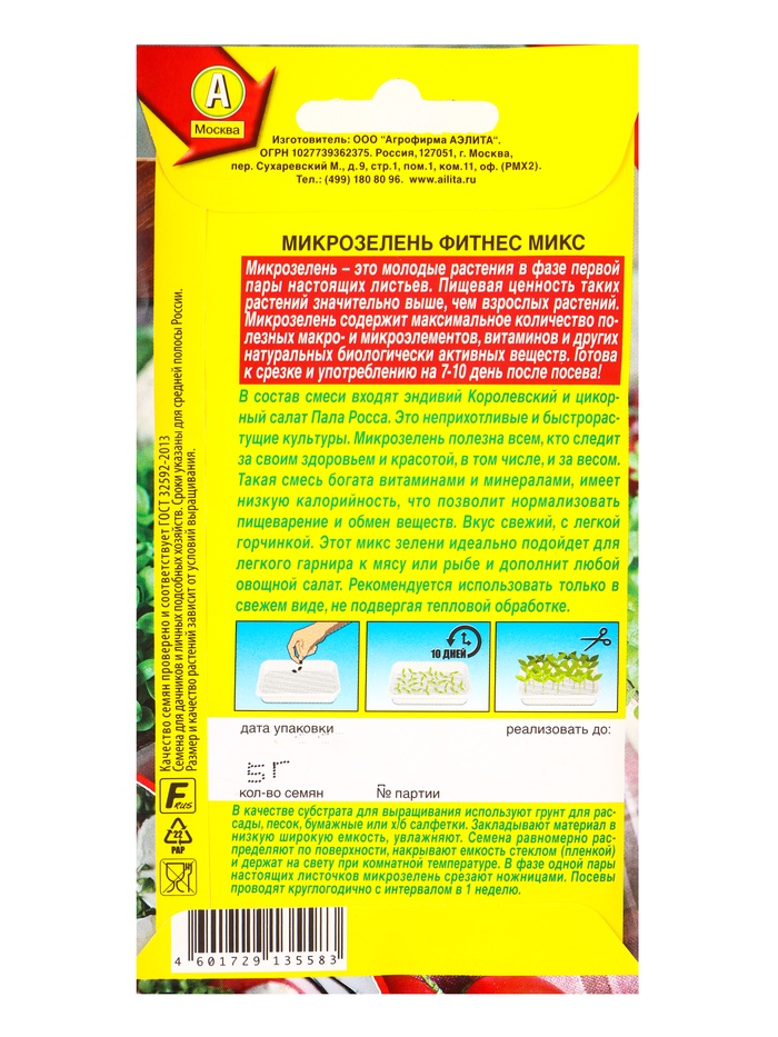 Семена Микрозелень «Фитнес микс», 5 г, «Агрофирма АЭЛИТА» — Характеристики