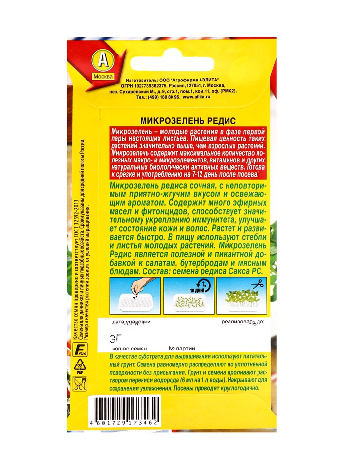 Микрозелень – молодые растения в фазе первой пары настоящих листьев. Пищевая ценность таких растений значительно выше, чем взрослых растений. Микрозелень содержит максимальное количество полезных макро- и микроэлементов, витаминов и других натуральных биологически активных веществ. Готова к срезке и употреблению на 7-9 день после посева!