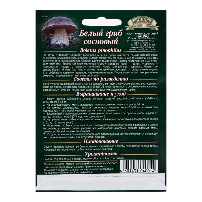 Семена Мицелий грибов «Белый гриб сосновый», на зерновом субстрате, 15 мл, «Гавриш» — Характеристики
